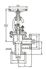 | DN | L | D | D1 | D2 | f | b | zxφd | Do | H1 | H2 |